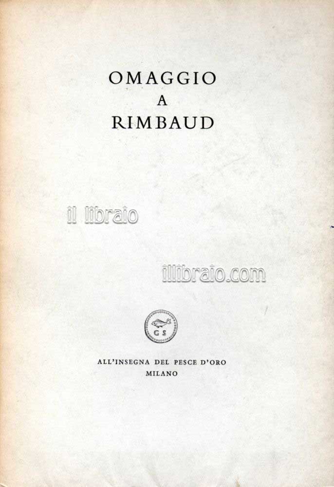 in 16°; pp. 46; br. con sovracop.; 1^ ed. Omaggio a Rimbaud di poeti italiani "viventi" in occasione del primo centenario della nascita di Arthur Rimbaud. Scritti di: R. Bacchelli, L. Bartolini, A. Bertolucci, C. Betocchi, V. Cardarelli, R. Carrieri, G. Comi, L. De Libero, A. Gatto. C. Govoni, P. Jahier, M. Luzi, E. Montale, A. Palazzeschi, G. Papini, C. Pavolini, E. Pea, S. Penna, S. Quasimodo, C. Rebora, C. Sbarbaro, V. Sereni, L. Sinisgalli, A. Soffici, S. Solmi, G. Ungaretti e D. Valeri. Allegato facsimile di biglietto da visita di Rimbaud durante il soggiorno milanese. Tiratura di 500 esemplari numerati (ns. 336)