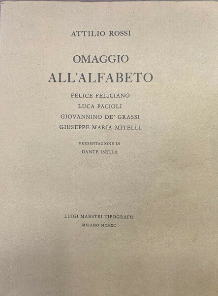Felice Feliciano. Luca Pacioli. Giovannino de' Grassi. Giuseppe Maria Mitelli. Presentazione di Dante Isella. Milano. Luigi Maestro Tipografo 1990, 4°, pp. 176. Illustrato.