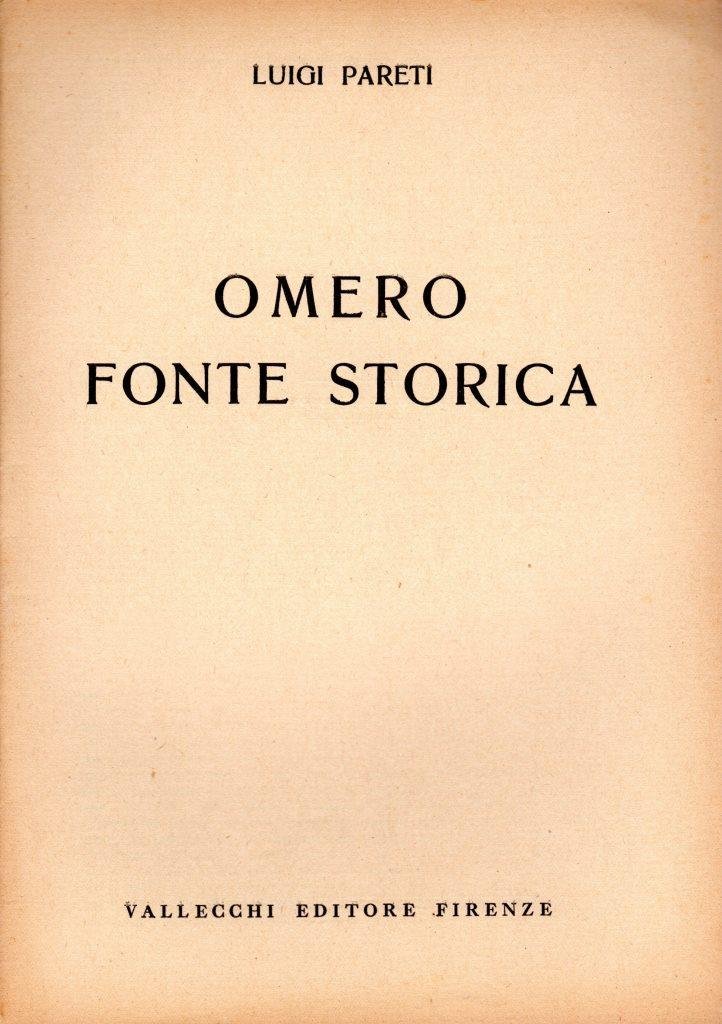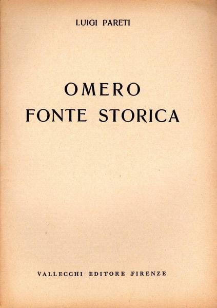 Omero fonte storica, prima edizione 1931, pp. 21, formato 17 x 24,5.<BR>Copertina morbida di colore beige con titoli in nero al piatto anteriore. Estratto da Il Marzocco nn. 18, 19, 20 e 21.<BR>Ottime condizioni.