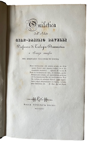 Omiletica dell'abate Gian-Basilio Ravelli professore di teologia dommatica e scienze annesse nel seminario vescovile di Crema.