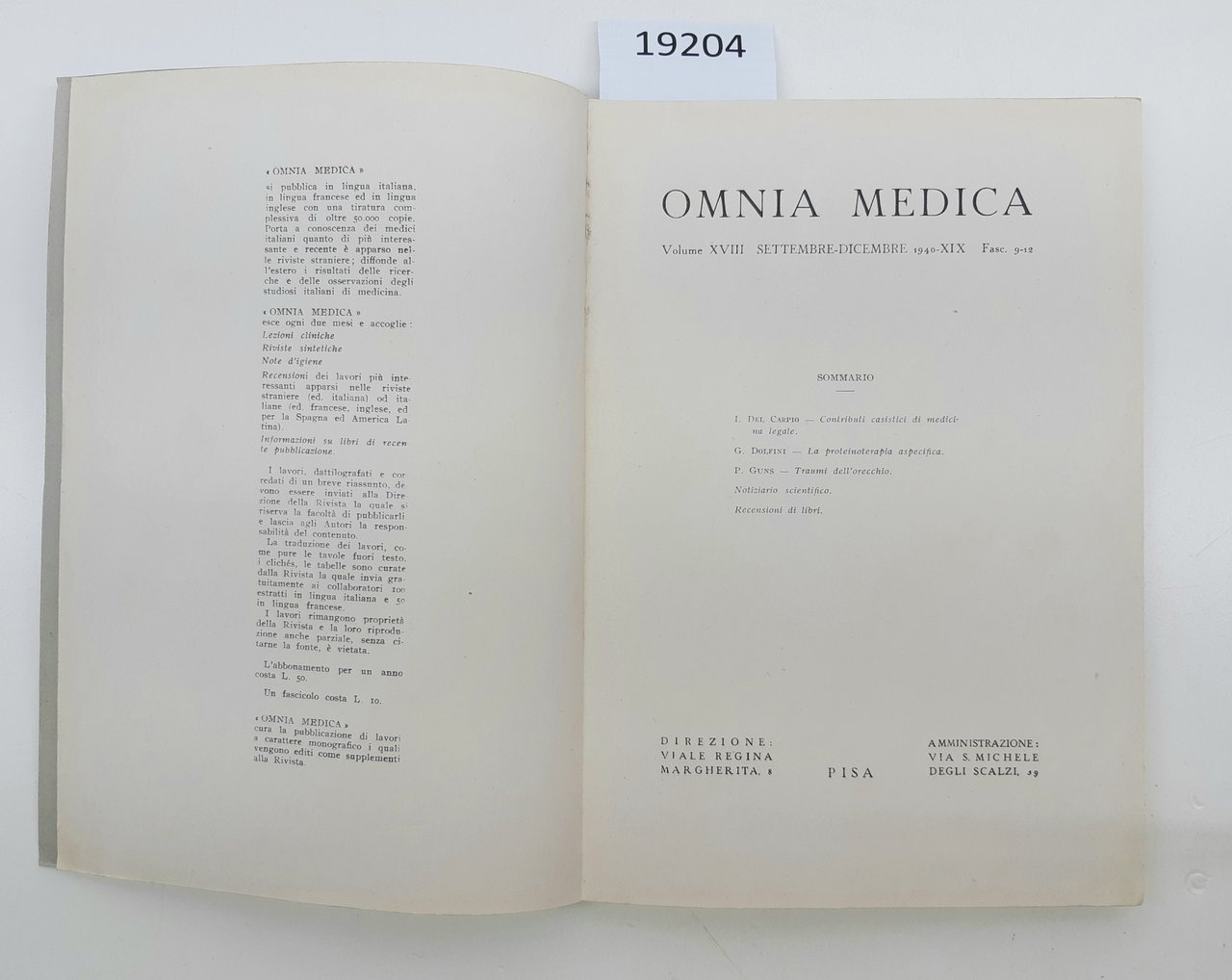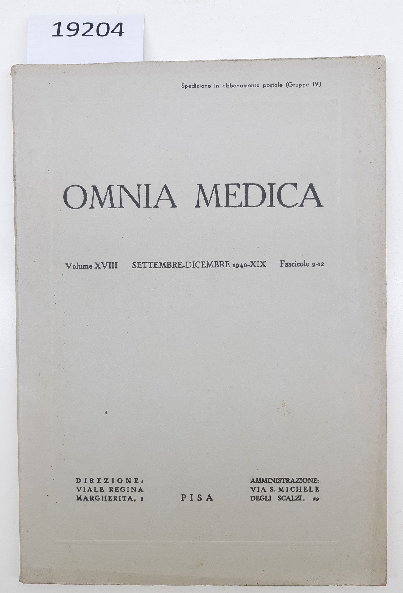 Omnia Medica fascicolo 9-12 settembre 1940 Pisa