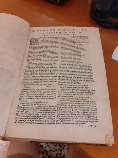 Opera omnia del poeta Orazio in lingua latina con interpretazioni di Acrone, Porphyrione, Iano Parrasio, Antonio Mancinello.