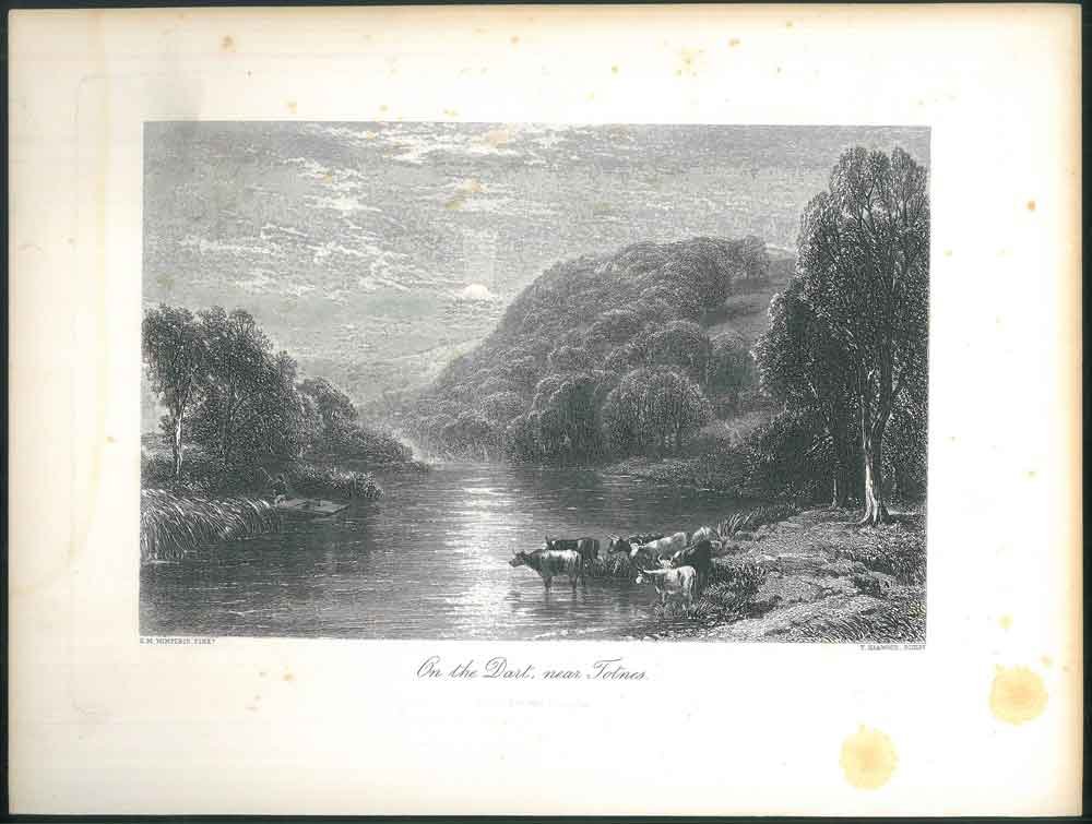 <p>Incisione su acciaio, impronta 27 x 19 cm, su foglio 31,5 x 23,5. Sulle Rive del lago Dart, nei pressi della città di Totnes (Inghilterra). Tratto da "Picturesque Europe" 1875-1879. Tracce del tempo ai margini. </p>