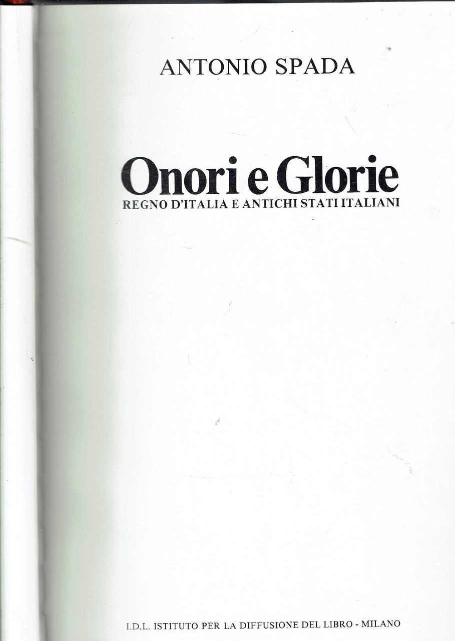 Onori E Glorie Regno D'Italia E Antichi Stati italiani di Spada Antonio