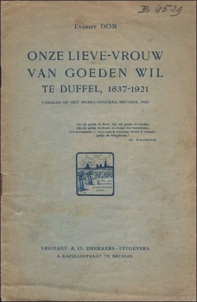 ONZE LIEVE-VROUW VAN GOEDEN WIL TE DUFFEL, 1637 - 1921. VERSLAG OP HET MARIA-CONGRES, BRUSSEL, 1921.