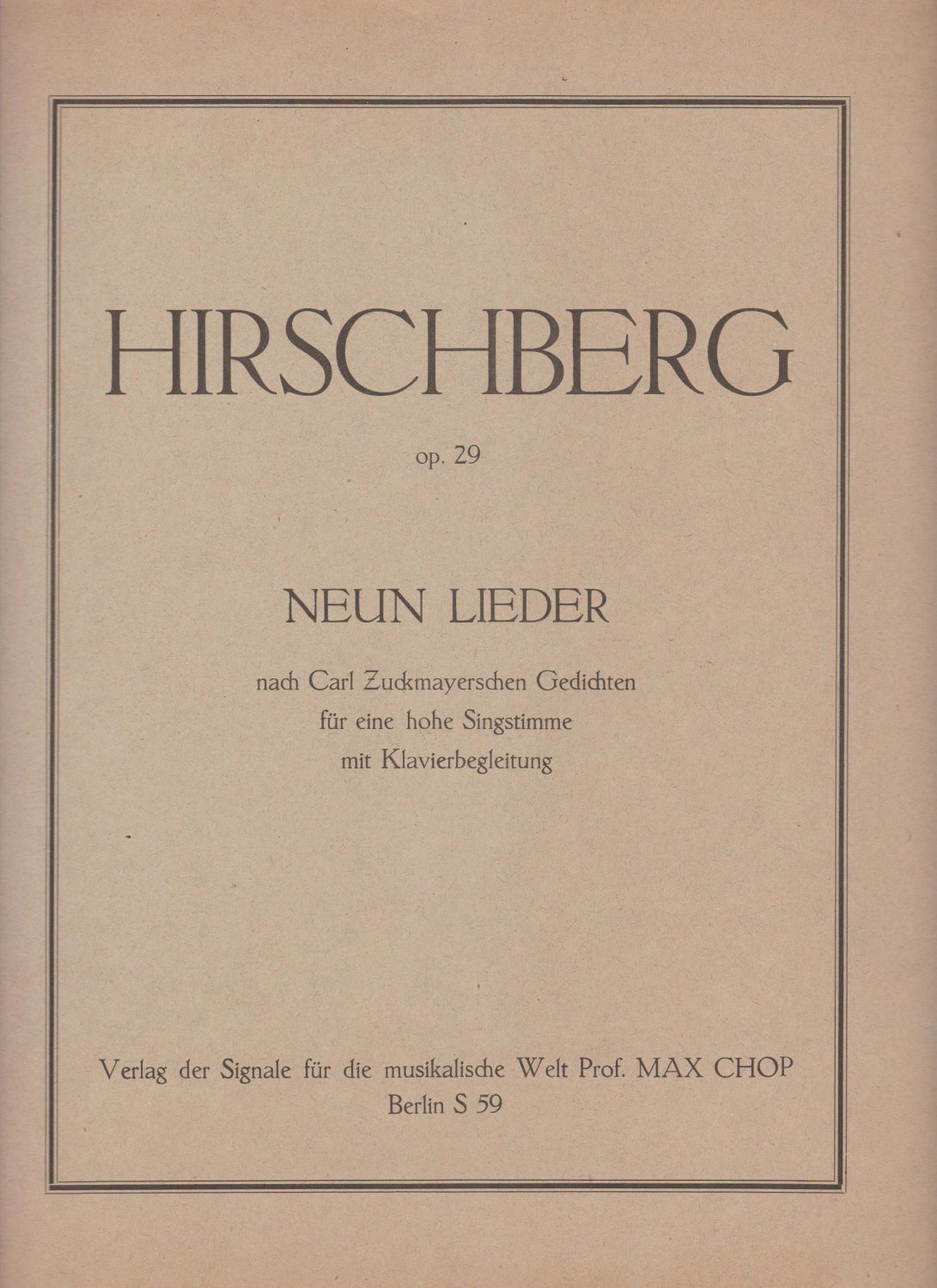 Op. 29. Neun Lieder nach Carl Zuckmayerschen Gedichten für eine hohe Singstimme mit Klavierbegleitung.