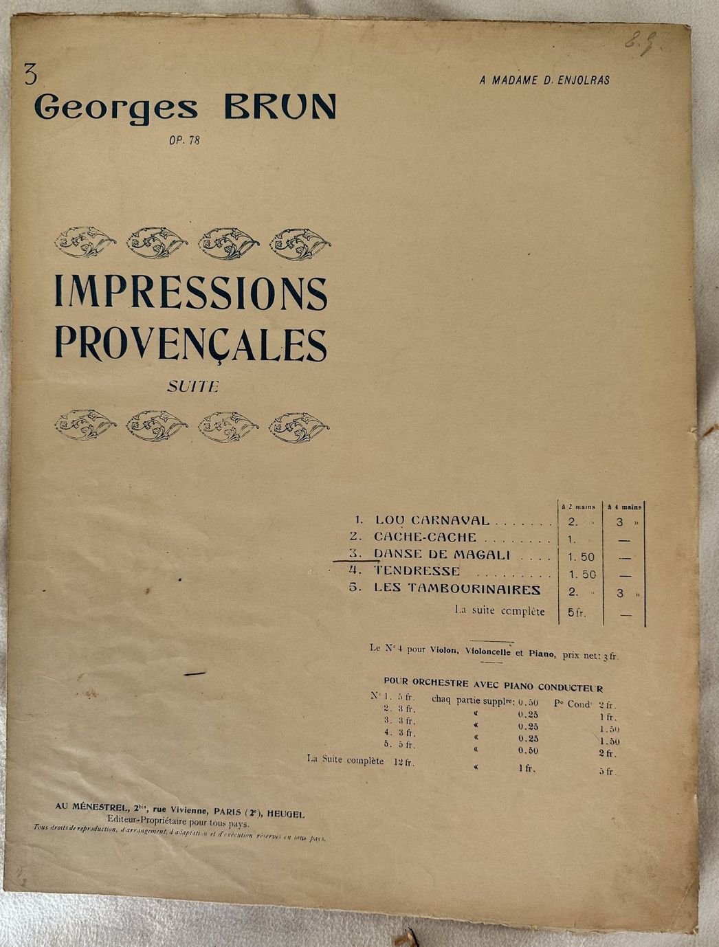 OP. 78 IMPRESSIONS PROVENCALES DANSE DE MAGALI
