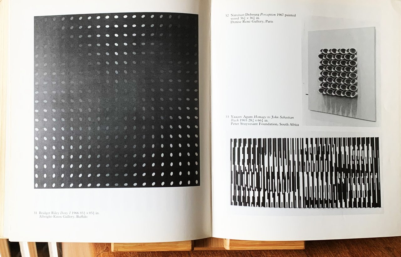 I ed.. Testo in inglese. VIII quasi quadro/ 192/ rilegaturacartonata rifinita in carta bianca con grafica in nero e con illustrazione optical in b/n al primo piatto. Con illustrazioni in b/n e a colori (54 figure nel testo e f.t. in b/n e 65 figure in b/n e a colori in tavole patinate f.t.. Stato buono (leggera usura della copertina ai margini - copertina lievemente brunita e polverosa - firma di possesso a penna rossa nel primo foglio di guardia - fogli di guardia e pagine leggermente bruniti). Contents: Author's note; D.C.B. (Dublin 1969) - Introduction - Historical background - Optical effects: black and white - Optical effects: colour - Reliefs, moving objects, light - The common features of Op - Op and other forms of art - Principal figures in the European movement (Vasarely - Soto - Agam, Fontana and Klein - New Tendency - Equipo 57 - Group Zero - Italian groups and artists - Groupe de Recherche d'Art Visual - Cruz-Diez - Other Paris artists - Other continental artists) - British and American Op (Bridget Riley - Peter Sedgley - Jeffrey Steele - Other British artists - American Op - Critical assessment - Acknouledgements - Bibliography - Index.