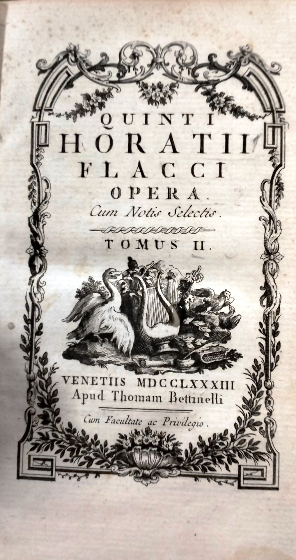 8° (cm. 18) legat. in tela blu recente tit. oro al dorso, voll. 2, pp. 232; 255. Con 2 bei frontesp. figurati e antiporta incisa in rame al 1° vol. Ottimo esempl.