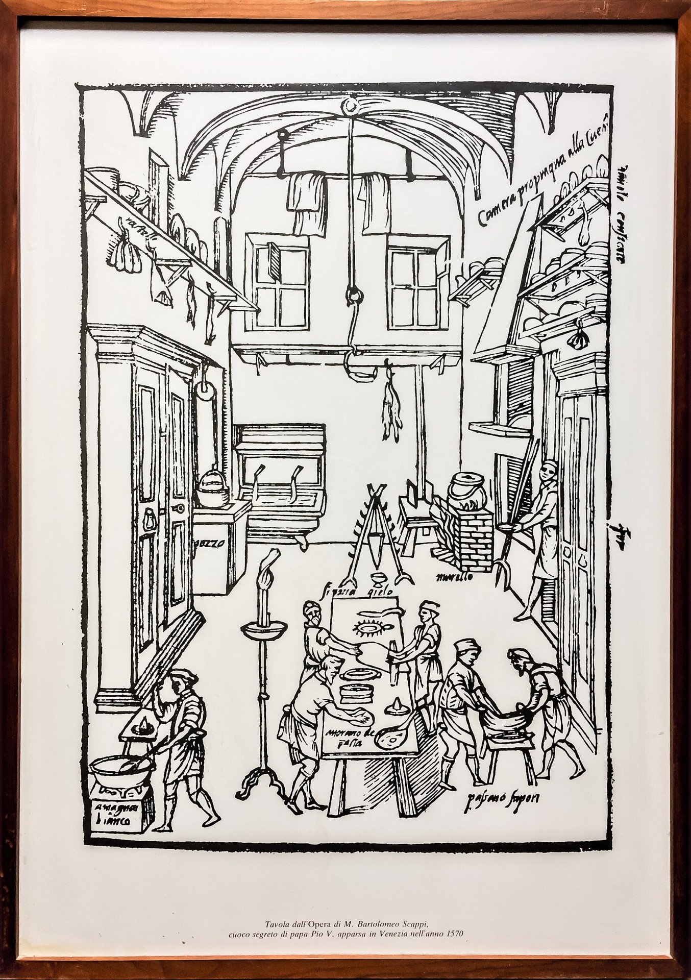 Riproduzione amatoriale in grande formato di una xilografia dell'opera, in cornice di legno e vetro, in ottimo stato.