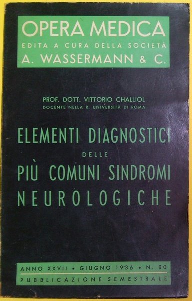 Opera medica edita a cura della Società A. Wassermann & C. Milano. Prof. Dott. Vittorio Challiol. Elementi diagnostici delle più comuni sindromi neurologiche.