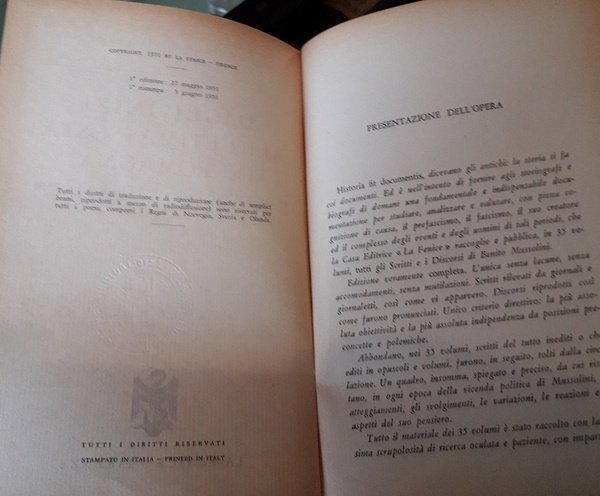 OPERA OMNIA DI BENITO MUSSOLINI (1951)