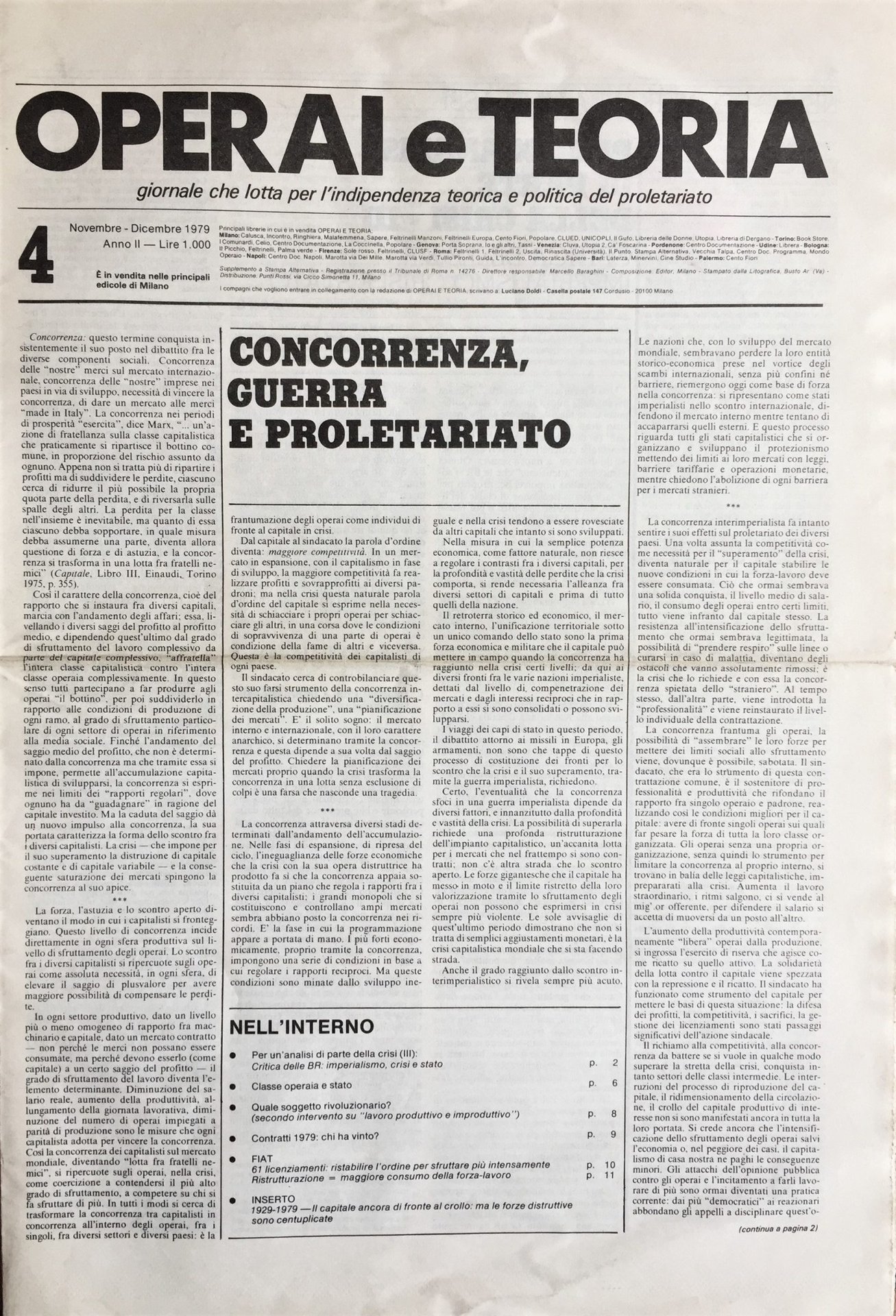Operai e Teoria. Giornale che lotta per l'indipendenza teorica e politica del proletariato. Anno II. No. 4. Novembre – Dicembre 1979