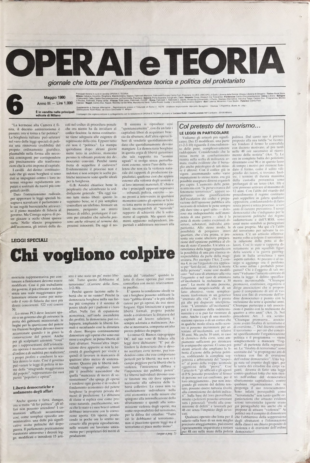 Operai e Teoria. Giornale che lotta per l'indipendenza teorica e politica del proletariato. Anno III. No. 6. Maggio 1980