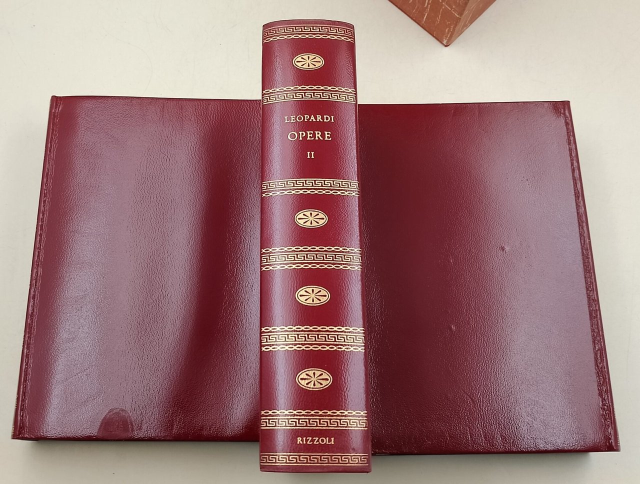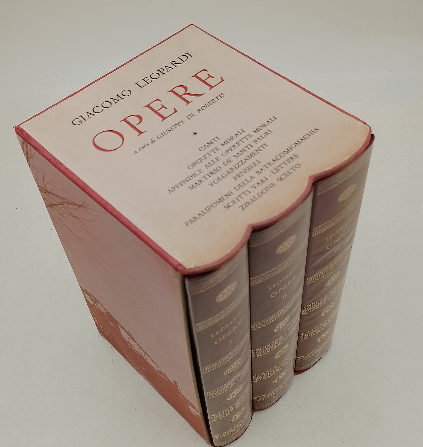 3 voll., pelle ed., sovrac in acetato mancanti, astuccio, a cura di Giuseppe De Robertis., ill. in antiporta; volumi in buono stato, piccolo alone al margine inf. del piatto ant. del I vol., astuccio in buono stato, minimi segni del tempo. ***Due to bureaucratic reasons, books dated over 70 years old cannot be immediately exported, please contact us before placing the order.***