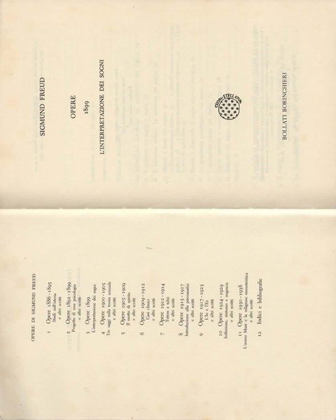 In 8°, brossura editoriale illustrata (lievi fioriture all'interno della br. ed ai fogli contigui), pp. XXIV,613,(3); coll. "Opere di Sigmund Freud. 3", esemplare molto buono. (zC7/a)