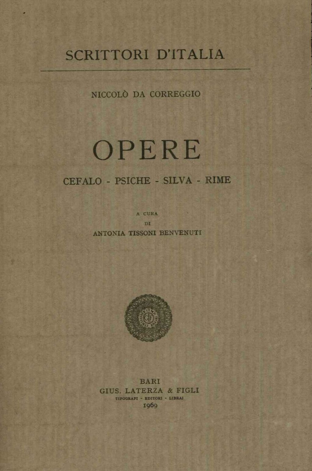 Opere. Cefalo - Psiche - Silva - Rime. A cura di Antonia Tissoni Benvenuti.