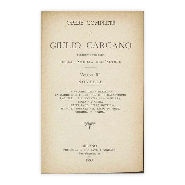 Opere complete di Giulio Carcano - Volume III Novelle