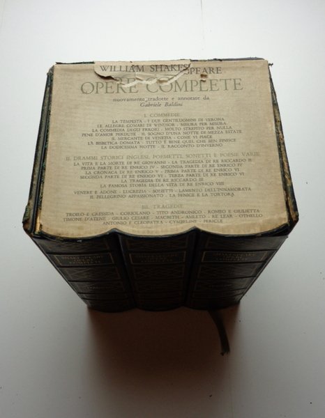 OPERE COMPLETE. Nuovamente tradotte e annotate da Gabriele Baldini. Vol. 1 : Commedie. Vol. 2 : Drammi storici inglesi ; Poemetti ; Sonetti e poesie varie. Vol. 3 : Tragedie.