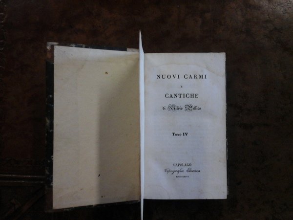 Molto buono, mezza pelle con titoli e fregi oro al dorso, tagli marmorizzati, in - 16, 188+179 pp, macchioline, mancanze e scollatura al dorso. La Tipografia e Libreria Elvetica di Capolago, attualmente quartiere della città di Mendrisio, fu una casa editrice svizzera del XIX secolo. Attiva nel Canton Ticino dal 1830 al 1853, fu famosa per essere stata la tipografia clandestina dei patrioti del Risorgimento.
