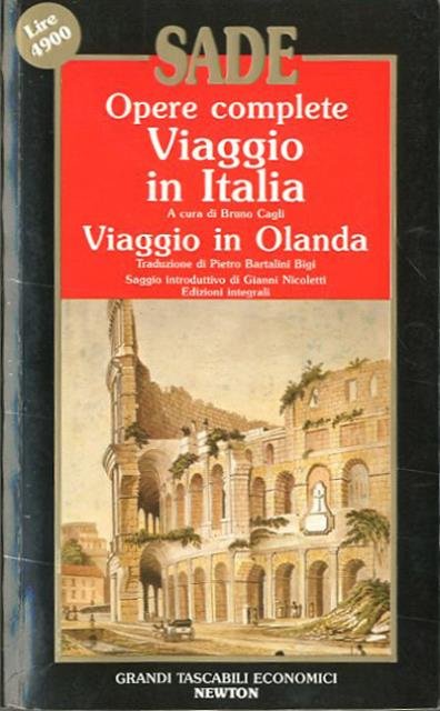 288 p. ; 22 x 13 cm. Saggio introduttivo di Gianni Nicoletti. Traduzioni a cura di Bruno Cagli e Pietro Bartalini Bigi. Il viaggio in Italia del marchese de Sade si svolse nel 1775-76. È descritto rapidamente l'itinerario che lo porta dal castello di La Coste, in Provenza, in Italia, ma l'autore si sofferma dettagliatamente su Firenze, Roma (e dintorni), Napoli (e dintorni). Il testo del "Viaggio in Italia" è prevalentemente descrittivo di luoghi, monumenti, opere d'arte. Ma non mancano le osservazioni di costume: la corruzione a Firenze, la prostituzione infantile a Napoli, una curiosa versione del martirio di sant'Agnese a Roma. Il viaggio in Olanda è descritto in forma epistolare e ripete nello stile e nel linguaggio quello in Italia. Brossura editoriale, coperta illustrata a colori, in cartoncino flessibile, plastificato lucido. Codice libreria 2522.