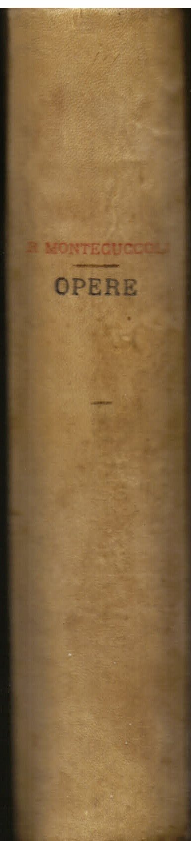 2 parti in un tomo in-8° (220x140mm), pp. XII, 347; (4), 312, (2); legatura primonovecentesca m. pergamena e angoli con titolo in rosso e nero al dorso e piatti marmorizzati. Ritratto del Montecuccoli all'antiporta. Un facsimile di autografo ripiegato al primo vol. Bell'esemplare in barbe. Pregevole edizione ottocentesca, esemplata su quella curata dal Foscolo, delle opere di uno dei massimi trattatisti militari italiani.