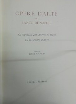 NAPOLI, BANCO DI NAPOLI, 1953. In 4∞: pp. 58 + 130 belle tavole f.t. in nero e 9 a.c. protette da veline. Leg. edit.t. tela con Stemma del Banco, impresso a rilievo al piatto anter., titt. in oro su tassello al d. Edizione a tiratura limitata "Fuori Commercio". Qualche fioritura.
