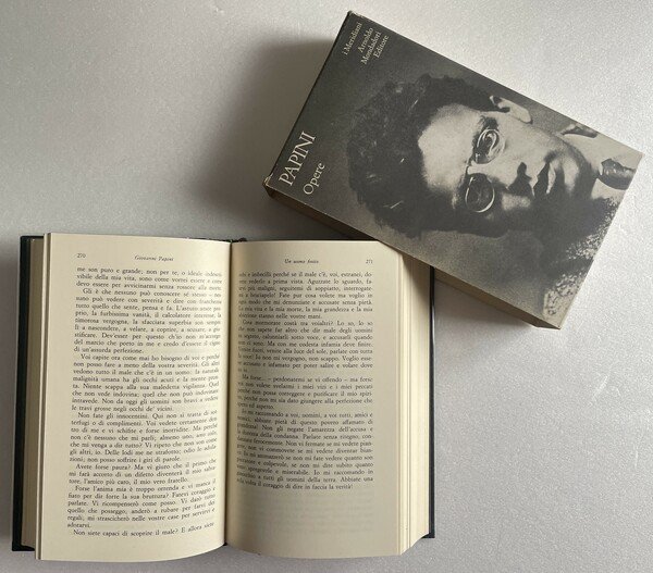 17,5 x 11,5 cm. XLVI, 810 p, Legatura editoriale in simil pelle blu con titoli in oro al dorso, sovraccoperta in acetato e completo di cofanetto editoriale illustrato. Volume in ottimo stato. Prima edizione. A cura di Luigi Baldacci con la collaborazione di Giuseppe Nicoletti, introduzione di Luigi Baldacci