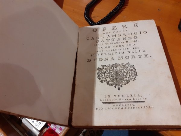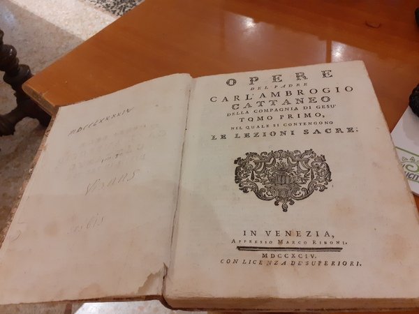 Opere del padre Carl'Ambrogio Cattaneo della Compagnia di Gesù. Tomo primo nel quale si contengono Le Lezioni Sacre. Tomo secondo nel quale di contiene l'esercizio della buona morte