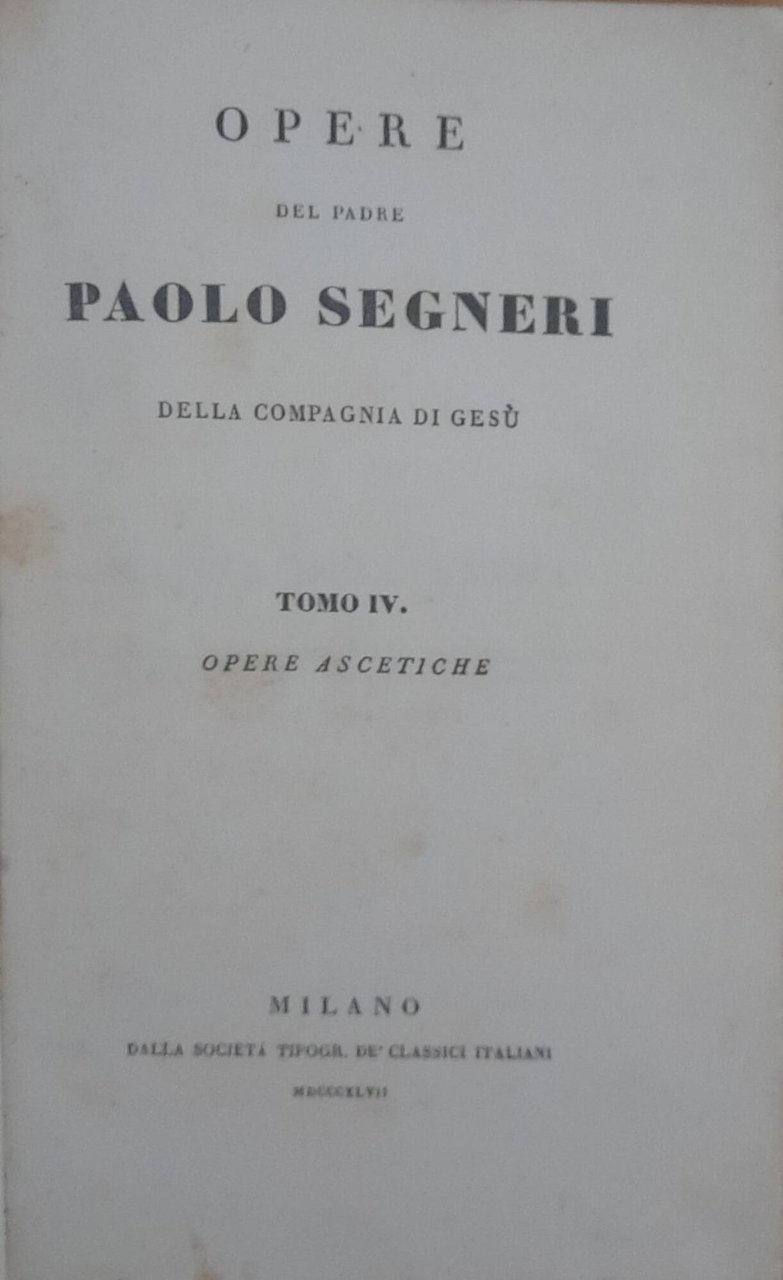 Opere del Padre Paolo Segneri della Compagnia di Gesù (Tomo IV) Opere ascetiche