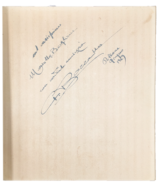OPERE del Pittore Giuseppe BOZZALLA. Tiratura di 500 copie numerate dall'1 al 500. La ns. copia reca il numero 472. Alla sguardia, a penna, gran DEDICA AUTOGRAFA con FIRMA del Bozzalla al grande incisore paesaggista Marcello BOGLIONE.