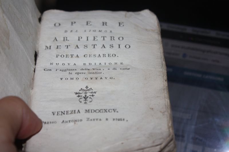 Opere Del Signor A.B.Pietro Metastasio Poeta Cesareo Venezia 1795 Tomo Ottavo, , CODICE 3866, , OPERE DEL SIGNOR AB.PIETRO METASTASIO, POETA CESAREO, NUOVA EDIZIONE, CON L'AGGIUNTA DELLA VITA E DI TUTTE LE OPERE INEDITE, TOMO OTTAVO, VENEZIA 1795, PRESSO ANTONIO ZATTA E FIGLI, PAG 284 ESEMPLARE SLEGATO SENZA DORSETTO