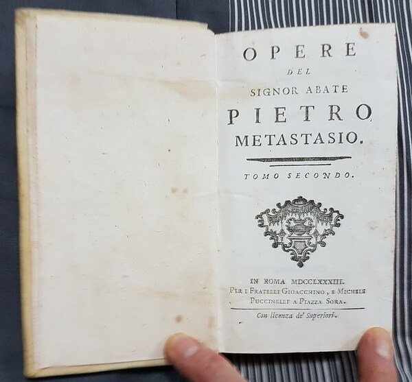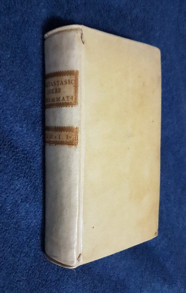 Edizione: dell'intera opera prevista di 12 volumi, manca l'ultimo (tomo xii) - piano dell'opera: tomo 1â° (n. 6 opere: artaserse, adraino, demetrio, il sogno di scipione, il natal di giove, la danza) - tomo 2â° (n. 8 opere: olimpiade, issipile, ezio, l'isola disabitata, le cinesi, il vero omaggio, l'amor prigioniero, il ciclope) - tomo 3â° (n. 6 opere: didone abbandonata, la clemenza di tito, siroe, l'asilo d'amore, la pace tra la virtu' e la bellezza, le grazie vendicate) - tomo 4â° (n. 6 opere: catone in utica, demoofonte, alessandro nelle indie, il tempio dell'eternita', la contesa de' numi, il sogno) - tomo 5â° (n. 8 opere: achille in sciro, ciro riconosciuto, temistocle, il palladio conservato, il parnaso accusato e difeso, astrea placata, sonetti, canzonette) - tomo 6â° (n. 6 opere: zenobia, ipermestra, antigono, gioas re di giuda, betulia liberata, sant'elena al calvario) - tomo 7â° (n. 8 opere: semiramide, il re pastore, l'eroe cinese, giuseppe riconosciute, la morte d'abel, la passione di gesu' cristo, per la festivita' del s. natale, isacco figura del redentore) - tomo 8â° (n. 8 opere: attilio regolo, nitteti, alcide al bivio, epitalamj, la strada della gloria, egeria, il parnaso confuso, cantate) - tomo 9â° (n. 8 opere: il trionfo di clelia, romolo ed ersilia, il ruggiero, il trionfo d'amore, i voti pubblici, la pubblica felicita', partenope, l'imperial residenza di schonbrunn) - tomo 10â° (n. 10 opere: la galatea, gli orti esperedi, l'endimione, il convito degli dei, l'angelica, la morte di catone, l'origine delle leggi, il ratto d'europa, ode sopra il santissimo natale, il giustino tragedia) - 11â° tomo (n. 14 opere: l'atenaibe. ovvero gli effettibenerosi, traduzione della satira iii di giovenale, teti e pele' ovvero l'iddiglio epitalmico, la ritrosia disarmata, la corona, l'ape, satira vi del libro ii di q. orazio flacco, la gara, tributo id rispetto, la rispettosa tenerezza, augurio di felicita', la pace tra le tre dee, invito a cena d'orazio a torquato, l'inverno, ovvero, la provida pastorella cantata).