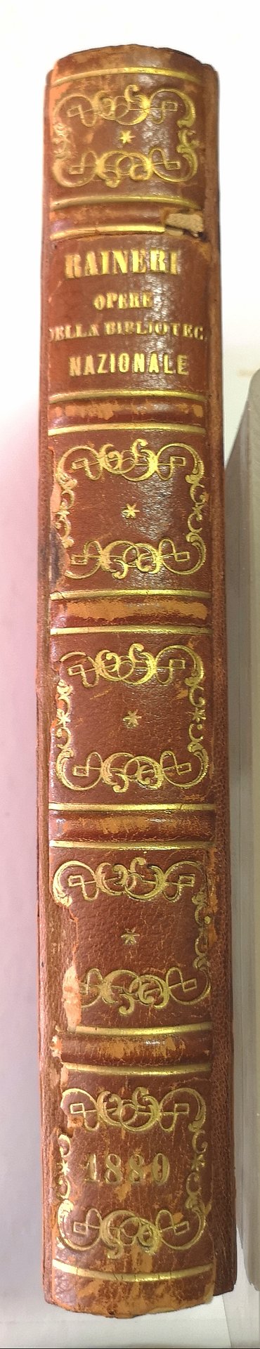 >in-8, pp. IX, 405, (6), incisione in antiporta con i ritratti di celebri bibliofili come Doni, Fontanini, Poggiali, Zeno, Gamba, Colombo, Cinelli. Legatura posteriore in m. pelle ed angoli decorata con filetti in oro, piatti in percallina, al dorso è applicato il dorso a nervi in pelle della precedente legatura coeva, con titolo e fregi in oro. Brossura editoriale originale conservata. Edizione originale, impressa per il XIV.mo centenario della nascita di S. Benedetto da Norcia in cinquecento esemplari numerati, il presente n.3 su carta distinta. Catalogo ragionato che descrive ampiamente varie centinaia di opere, in prevalenza di letteratura e storia italiana, costituenti la celebre collana edita da Le Monnier. Il volume contiene anche il testo di 20 Novelle di Boccaccio, A. Caro, Firenzuola, Ariosto, Monti ed altri.Ottimo esemplare, sporadiche note a lapis.