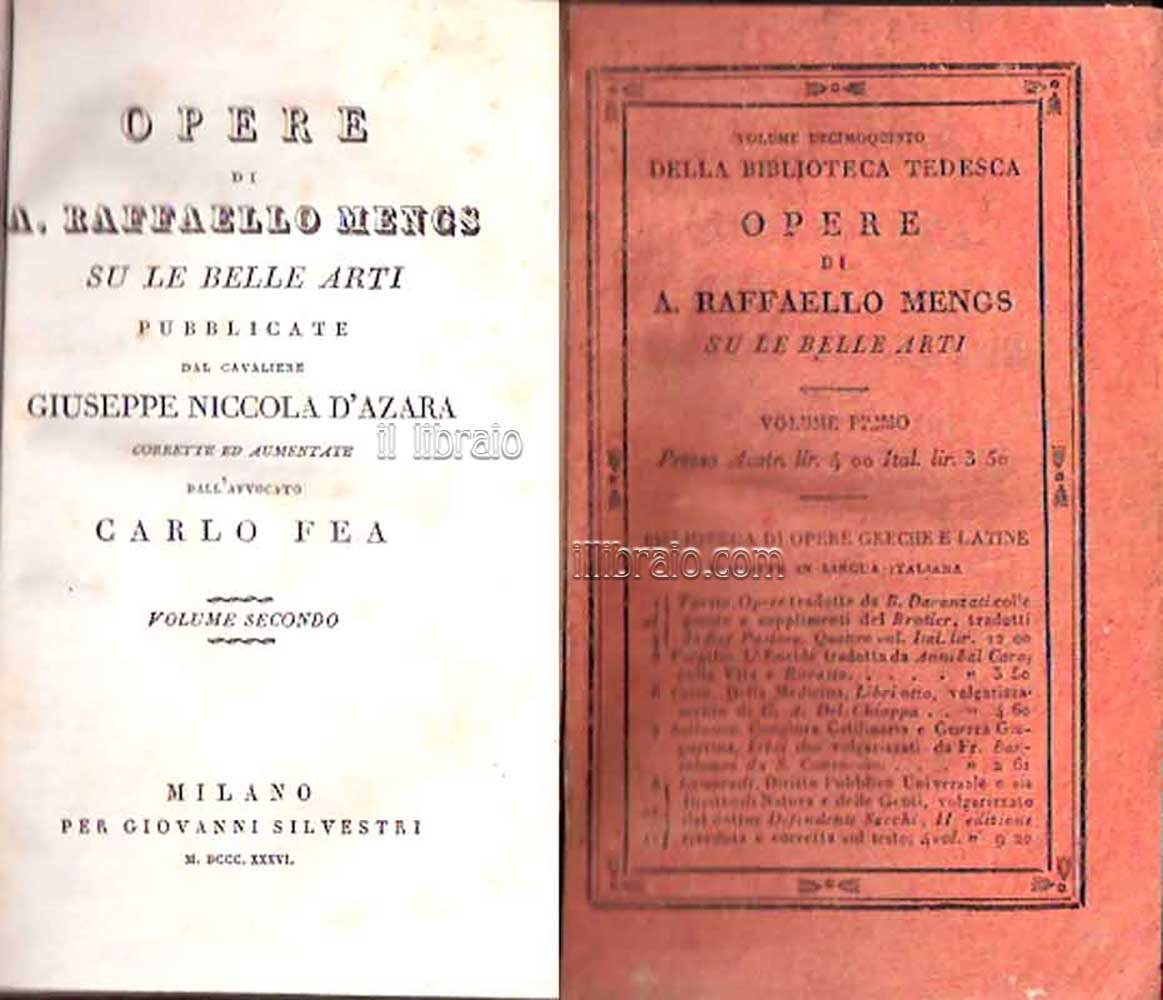 Opere di A. Raffaello Mengs su le belle arti pubblicate dal cavaliere Giuseppe Niccola D'Azara, corrette ed aumentate dall'avvocato Carlo Fea