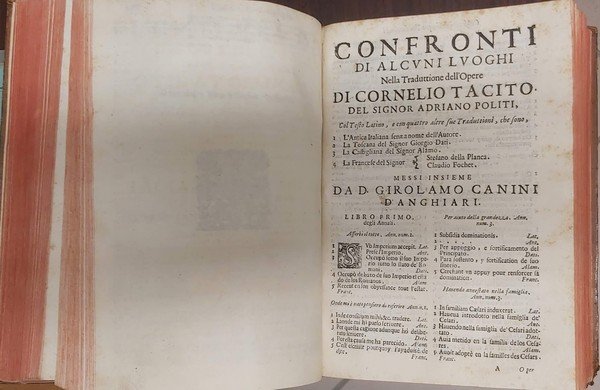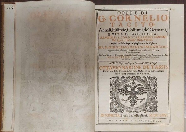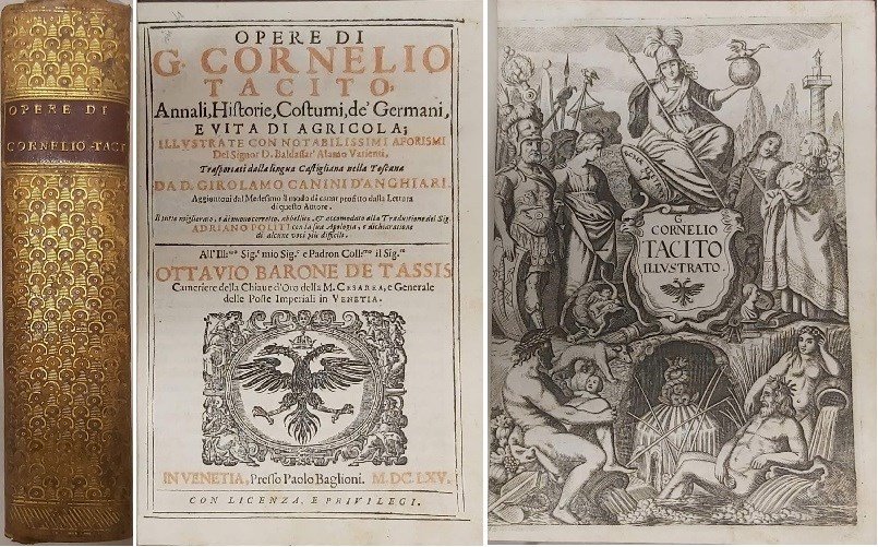 OPERE di… Annali, Historie, Costumi, de' Germani, e vita di Agricola, illustrate con notabilissimi aforismi del Signor D. Baldassar' Alamo Varienti. Trasportati dalla lingua Castigliana nella Toscana da D. Girolamo Canini d'Anghiari. Aggiuntovi del medesimo il Modo di cavar profitto dalla lettura di questo Autore. Il tutto migliorato e di nuovo corretto. del Sig. Adriano Politi.