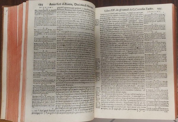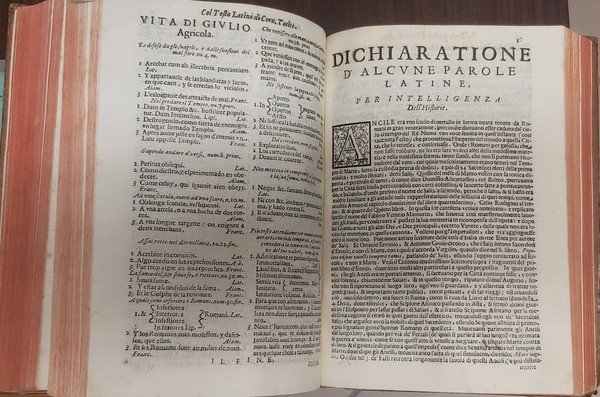 gr. vol. in-4, pp. (50), 544, 1 cb, (22), 70, 284, bella leg. p. pelle coeva con piatti riquadrati in oro, ricchi fregi e tass. al d., tagli color., risguardi in carta dec. Antip. allegorico in rame e front. a due colori. Paitoni IV, pp. 93-94: ". questa seconda traduzione. lo fece passare per uno scrittore assai pulito.". Seconda ediz. aumentata sulla prima del 1618. Belliss. esempl. [MM12-143]