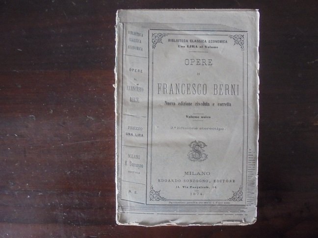 In 16∞: pp. 431. Br. edit. guasta. Fioriture. Dall`indice: "Il dialogo dei poeti - le rime. Le poesie latine, precedute da uno studio del Prof. Stefano Grosso. Le lettere edite ed inedite - L`opuscolo del Vergerio sul protestantismo del Berni. Una giunta di poesie burlesche del Mauro, Del Molza, del Burchiello e d`altri ottimi autori."