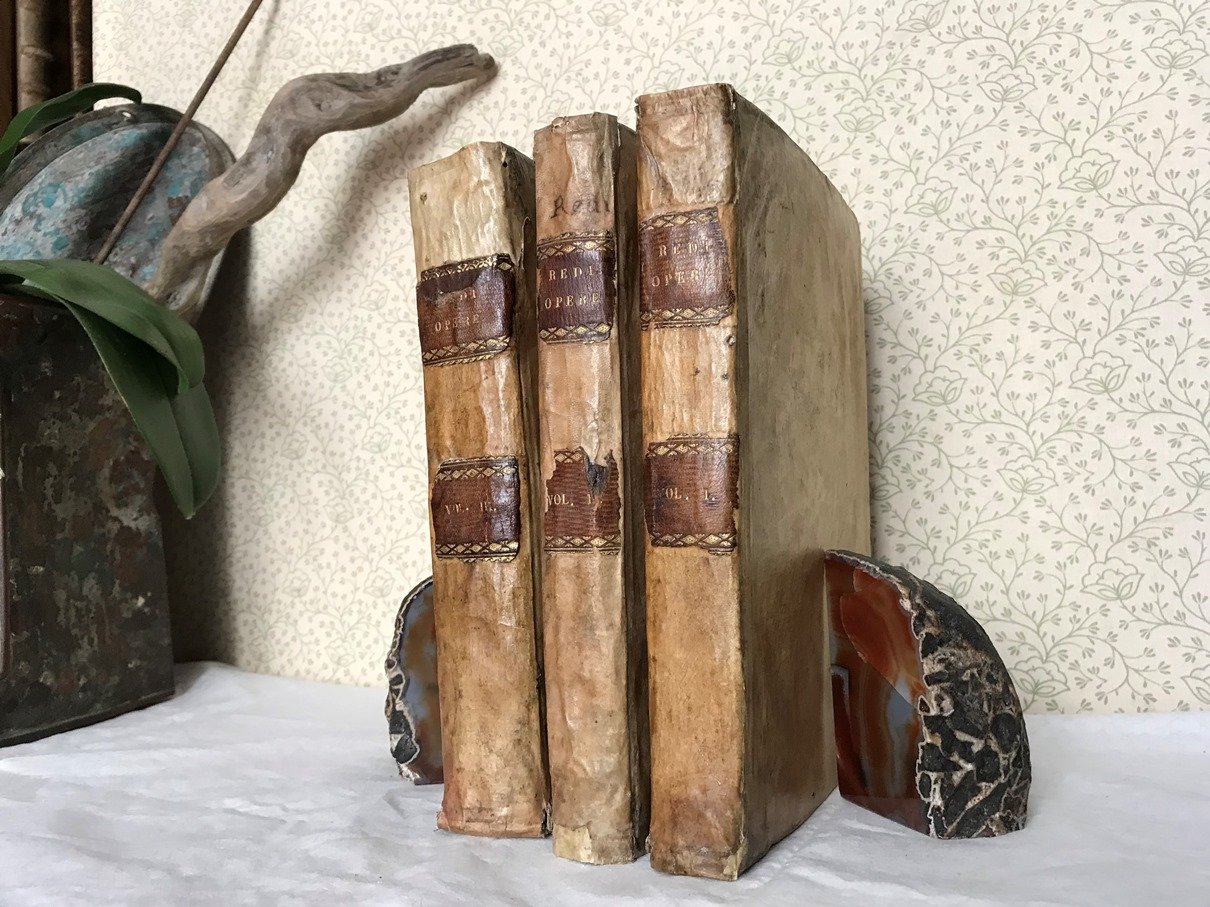 Quattro di sette tomi in 3 volumi in 4 legati in pergamena, titolo ai tasselli ai dorsi, sguardie, frontespizi, 144, 171 pp. al primo tomo, 254 al secondo, 264 e 280 pp. rispettivamente per il terzo e quarto tomo cui vanno aggiunte 32 tavole incise in rame al fondo del primo e secondo tomo. L'importanza dell'opera scientifica del Redi senza dubbio eccezionale. Questa raccolta (purtroppo incompleta) ne al tempo stesso la testimonianza ed il monumento. In buono stato, piuttosto poco comune, notevole.