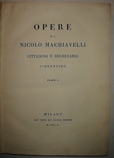 Opere di Nicolò Machiavelli, cittadino e segretario fiorentino