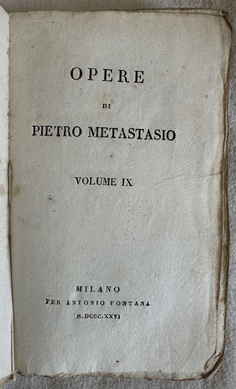 OPERE DI PIETRO METASTASIO VOLUME IX