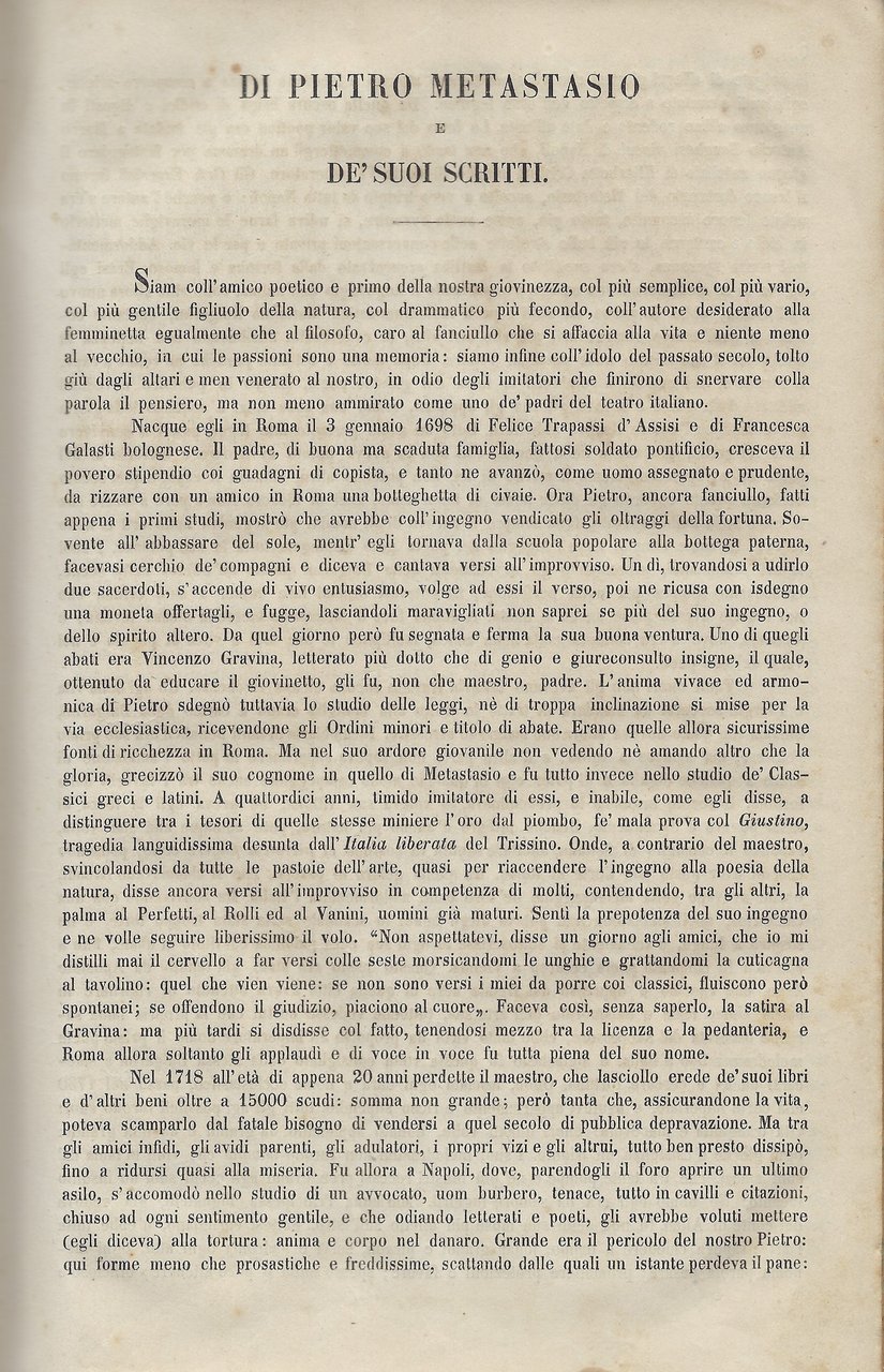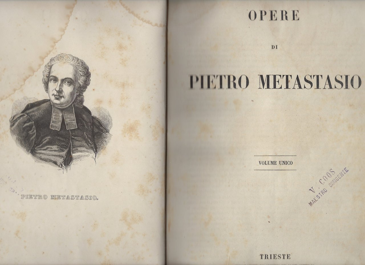 Ritratto del Metastasio all'antiporta e testo in due colonne.