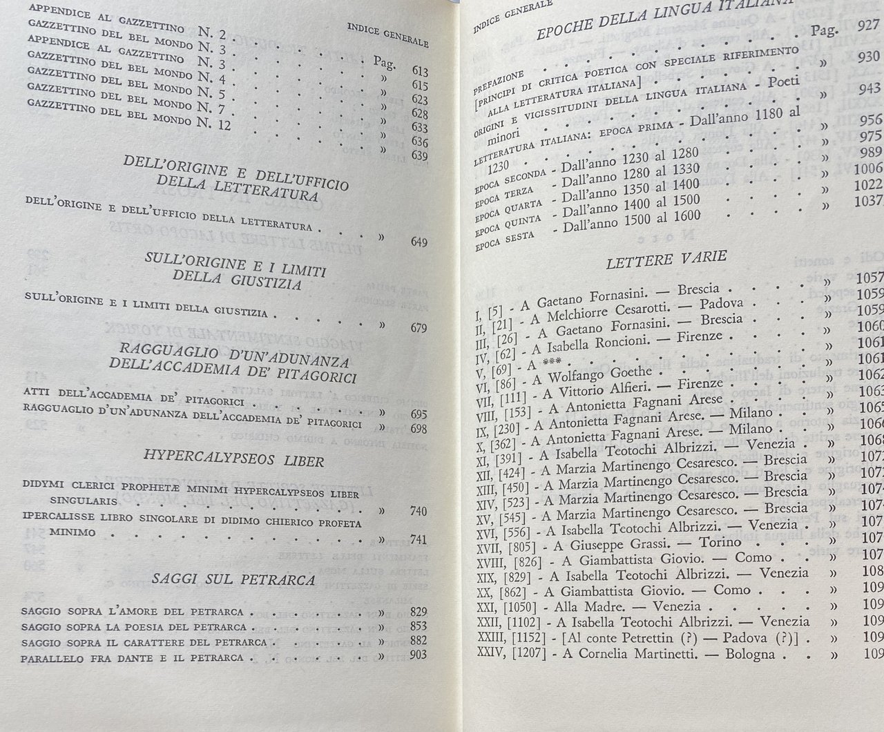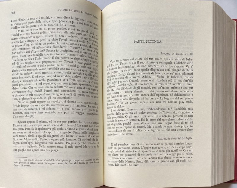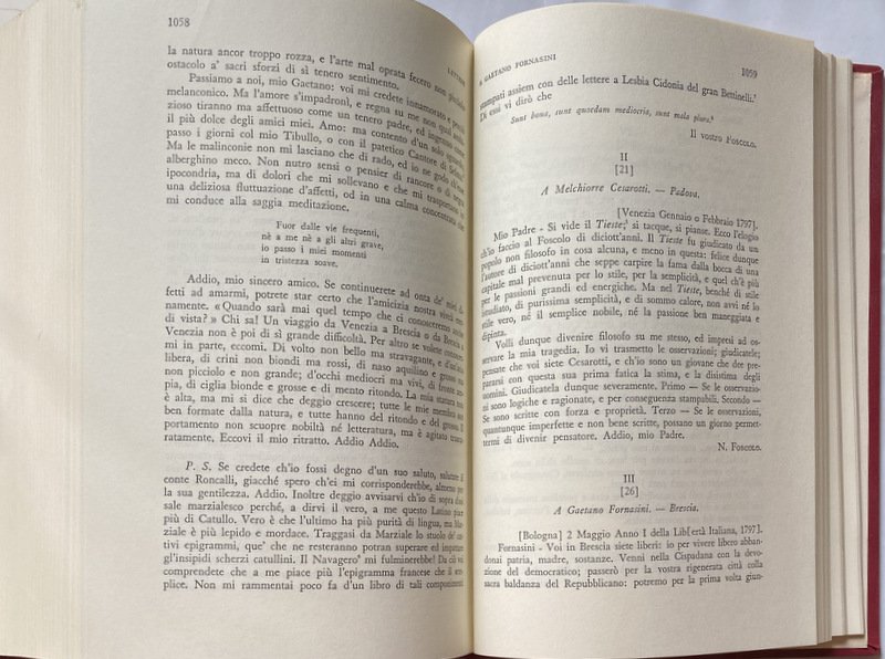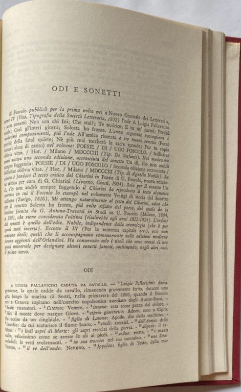 Soggetti: Letteratura italiana, Antologie, Raccolte poetiche, Poesia, Poesie, Settecento, Ottocento, Critica letteraria, Giovanni Getto, Le Corone, Poeti italiani, Vincenzo Monti, Lettere, Epistolario, Corrispondenza, A Luigia Pallavicini caduta da cavallo, Odi, Lirica, Opere complete, Collezionismo, Edizioni pregiate, Libri fuori catalogo, Strofe, Settenari, Rime, Neoclassicismo, Romanticismo, Età napoleonica, Restaurazione, Patria, Grecia, Zacinto, Zákynthos, Zante, Repubblica di Venezia, Nazionalismo, Austria, Intellettuali, Razionalismo, Titanismo, Winckelmann, Esilio, Volontari, Sepolcri, Unità d'Italia, Classici, Traduzioni, Saffo, Anacreonte, Alceo, Orazio, Iacopo Morelli, Biblioteca Marciana, Gaetano Fornasini, Arcadia, Componimenti poetici, Costantino Naranzi, Giovita Scalvini, Giustina Renier Michiel, Isabella Teotochi Albrizzi, Amori, Passioni, Biografie, Ippolito Pindemonte, Aurelio de' Giorgi Bertola, Libertà, Indipendenza, Pietro Giordani, Mario Pieri, Cosmopolitismo, Rivoluzione francese, Tieste, Edippo, Mario Scotti, Carte, Silvio Pellico, Civiltà Cattolica, Tragedie, Edipo a Colono, Wigberto Rivalta, Weltanschauung, Piano di Studj, Morale, Politica, Metafisica, Teologia, Storia, Poesia, Romanzi, Critica, Arti, Cicerone, Montesquieu, Rousseau, Locke, Tucidide, Senofonte, Sallustio, Omero, Virgilio, Tasso, Milton, Thomas Gray, Edward Young, Poesia sepolcrale, Shakespeare, Gessner, Vittorio Alfieri, Giuseppe Parini, Padova, Colli Euganei, A Bonaparte liberatore, Reggio Emilia, Tricolore, Monitore bolognese, Bologna, Timocrate, Gioan-Dionigi, Rivoluzionari radicali, Flaminio Massa, Carlo Lauberg, Girolamo Politi, Logge massoniche, Massoneria, Giovanni Andrea Spada, Memorie, Patrioti veneziani, Vincenzo Dandolo, Trattato di Campoformio, Horatio Nelson, Giovanni Costabili Containi, Giovanni Pindemonte, Giovanni Fantoni, Melchiorre Gioia, Repubblica Cisalpina, Pietro Custodi, Giuseppe Lattanzi, Sonetti, Giosuè Carducci, All'amica risanata, Antonietta Fagnani Arese, Alla sera, A Zacinto, In morte del fratello Giovanni, Alla Musa, Francesco Silvio Orlandini, Giovanni Battista Niccolini, Morte, Fratello, Agnello Nobile, Chioma di Berenice, Catullo, Callimaco, Grazie, Considerazioni, Discorsi, Poetica neoclassica, Francesco Melzi d'Eril, Marengo, Gioacchino Murat, Lady Fanny Emerytt Hamilton, Sophia, Mary, Floriana, Sentimental Journey, Sterne, Notizia intorno a Didimo Chierico, Giulia Beccaria, Carlo Imbonati, Pavia, Cesarotti, Marzia Martinengo Cesaresco, Loggia Reale Amalia Augusta, Iliade, Intendimento, Giovan Pietro Vieusseux, Alessandro Volta, Lezioni, Giulio Gabrielli di Montevecchio, Ajace, Lorenzo Aldighieri, Alderani, Jacopo Ortis, Ipercalisse, Servitù, Lettera apologetica, Mazzini, Essays on Petrarch, Decamerone, Commedia, Dante, Saggi critici, Lingua italiana, Antiquarj e Critici, Religione civile, Chiesa, Questione romana, Eroe romantico, Byron, Shelley, Giacomo Leopardi, Alessandro Manzoni, Mario Rapisardi, Illuminismo, Materialismo, Meccanicismo, Thomas Hobbes, Paul Henri Thiry d'Holbach, Diderot, Helvétius, Sensismo, Condillac, Jean-Jacques Rousseau, Goethe, Risorgimento, Uomini illustri, Antonio Canova, Inquietudine, Estetica neoclassica, Mitologia, Giambattista Vico, Endecasillabi, Storicismo, Gino Capponi, Sesto tomo dell'io, Romanzo autobiografico, Pellegrino Artusi, Walter Binni, Lanfranco Caretti, Mario Fubini, Oreste Macrì, Mario Martelli, Giuseppe Pecchio, Michele Saponaro, Traduttori dal latino, Autori romantici, Militanza, Missione educativa, Machiavelli, Influenze culturali, Pessimismo, Erudizione, Benedetto Croce, Giudizio storico, Accademia de' Pitagorici, Ideale, Vero, Epoche, Tempo, Eternità, Nulla, Rime, Stile, Metrica, Ricordo, Morti, Editto di Saint-Cloud, Sepoltura, Guillon, Cassandra, Pietà, Lontananza, Tematiche, Andra Calbo, Sigismondo Trechi, Giovanni Serbelloni, Quirina Mocenni Magiotti, Contessa d'Albany, Yorick, Donna Gentile, Francia, Gaetano Fornasini, Saggi, Isabella Roncioni, Antonietta Fagnano Ariese, Giuseppe Grassi, Cornelia Martinetti, Brescia, Muse, Italian literature, Anthologies, Poetry collections, Poetry, Poems, Eighteenth century, Nineteenth century, Literary criticism, Italian poets, Letters, Correspondence, To Luigia Pallavicini who fell from her horse, Odes, Lyrics, Complete works, Collectibles, Valuable editions, Out of print books, Strophe, Septenaries, Rhymes, Neoclassicism, Romanticism, Napoleonic Age, Restoration, Homeland, Greece, Zakynthos, Zakynthos, Republic of Venice, Nationalism, Intellectuals, Rationalism, Titanism, Exile, Volunteers, Sepulchres, Unification of Italy, Classics, Translations, Sappho, Anacreon, Alcaeus, Horace, Library, Poetry, Loves, Passions, Biographies, Freedom, Independence, Cosmopolitanism, French Revolution, Oedipus, Papers, Civilization, Tragedies, Oedipus at Colonus, Politics, Metaphysics, Theology, History, Poetry, Novels, Criticism, Cicero, Thucydides, Xenophon, Sallust, Homer, Virgil, Sepulchral poetry, Padua, A Bonaparte liberator, Timocrates, Radical revolutionaries, Masonic Lodges, Freemasonry, Memoirs, Venetian patriots, Treaty, Cisalpine Republic, Sonnets, To the healed friend, In the evening, On the death of his brother John, To the Muse, Death, Brother, Berenice's hair, Catullus, Callimachus, Considerations, Speeches, Neoclassical poetics, News about Didymos Cleric, Royal Lodge, Iliad, Understanding, Lessons, Ajax, Hypercalipse, Servitude, Apologetic, Decameron, Comedy, Critical essays, Italian language, Civil religion, Church, Roman question, Romantic hero, Enlightenment, Materialism, Mechanism, Illustrious men, Disquiet, Neoclassical aesthetics, Mythology, Endecasyllables, Historicism, Sixth volume of the ego, Autobiographical novel, Translators from Latin, Romantic authors, Militancy, Educational mission, Influences Cultural, Pessimism, Erudition, Historical judgment, Academy, Ideal, True, Eras, Time, Eternity, Nothing, Rhymes, Style, Metric, Remembrance, Dead, Edi