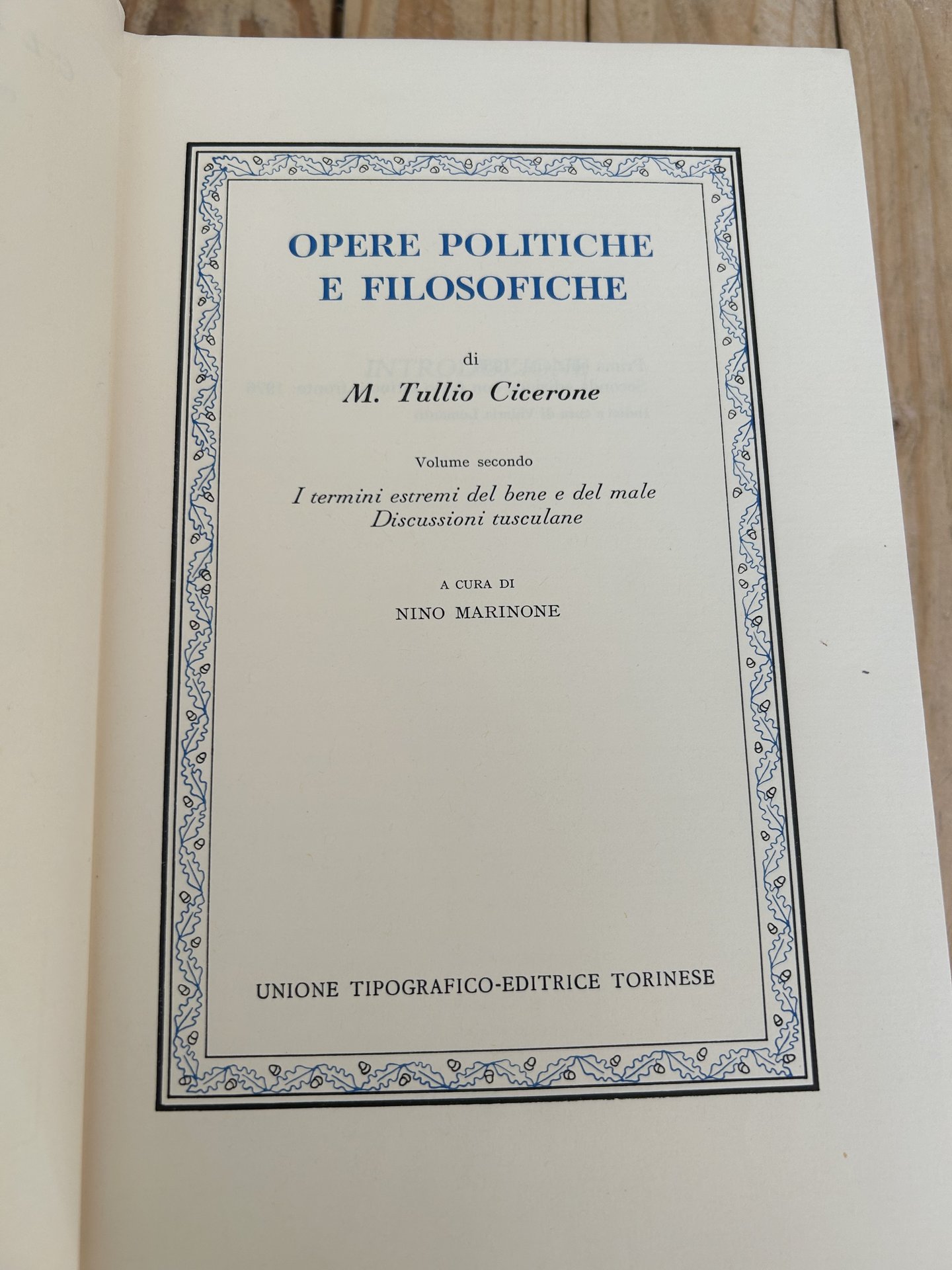 OPERE POLITICHE E FILOSOFICHE di M. Tullio Cicerone - vol II I termini estremi del bene e del male. Discussioni tusculane