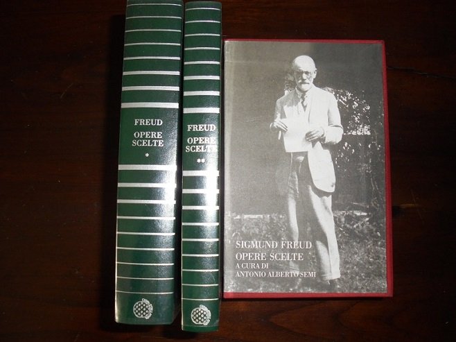 TORINO, BORINGHIERI, 1999. 2 Volumi. In 8∞: pp. 1602. compl. Collana Pantheon. Leg. in similpelle, cofanetto edit. fig. Progetto di una psicologia, ricordi di copertura, il poeta e la fantasia, esempi del modo come si tradiscono le fantasie patogene dei nevrotici, tecnica della psicanalisi, totem e tab˘, il motivo della scelta degli scrigni, nuovi consigli sulla tecnica della psicoanalisi, metapsicologia, caducit‡, introduzione alla psicoanalisi, il perturbante, sogno e telepatia, l`io e l`es, il tramonto del complesso edipico, note sul <<notes magico>>, la negazione, feticismo, il disagio della civilt‡, l`acquisizione del fuoco, introduzione alla psicoanalisi (nuova serie di lezioni), analisi terminabile e interminabile, costruzione nell`analisi, compendio di psicoanalisi.