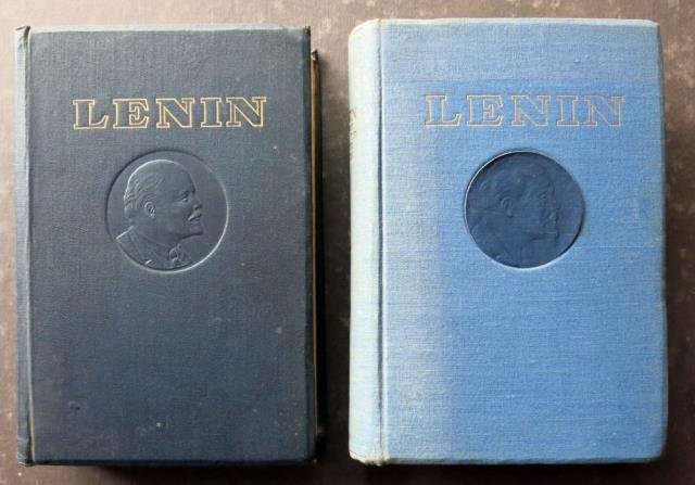 Edizioni in lingue estere, Mosca, 1948 - 1949. Volumi I e II. Opera completa in due volumi in 8vo grande, pp. 743 (con indice); 851 (con indice), un ritratto fotografico di Lenin a inizio di entrambi i volumi, virato al seppia e applicato su plancetta in carta, leg. edit. in percallina blu con ritratto su impressione a secco (primo volume) e in tela blu con ritratto su plancetta (secondo volume). Buono stato di conservazione di entrambi i volumi. .