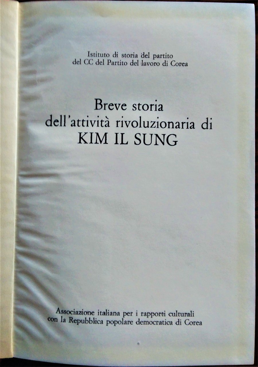 Pyongyang, Edizioni in lingue estere, 1974. 8°, due volumi, pp. (18), 586; (8), 534, due ritratti, legatura editoriale. Bella copia. Offerto con "Breve storia dell' attività rivoluzionaria di Kim Il Sung". Roma, Associazione italiana per i rapporti culturali con la Repubblica popolare democratica di Corea, s.d. 8°, pp. (4), 281,(3), un ritratto, legatura editoriale. Bella copia.