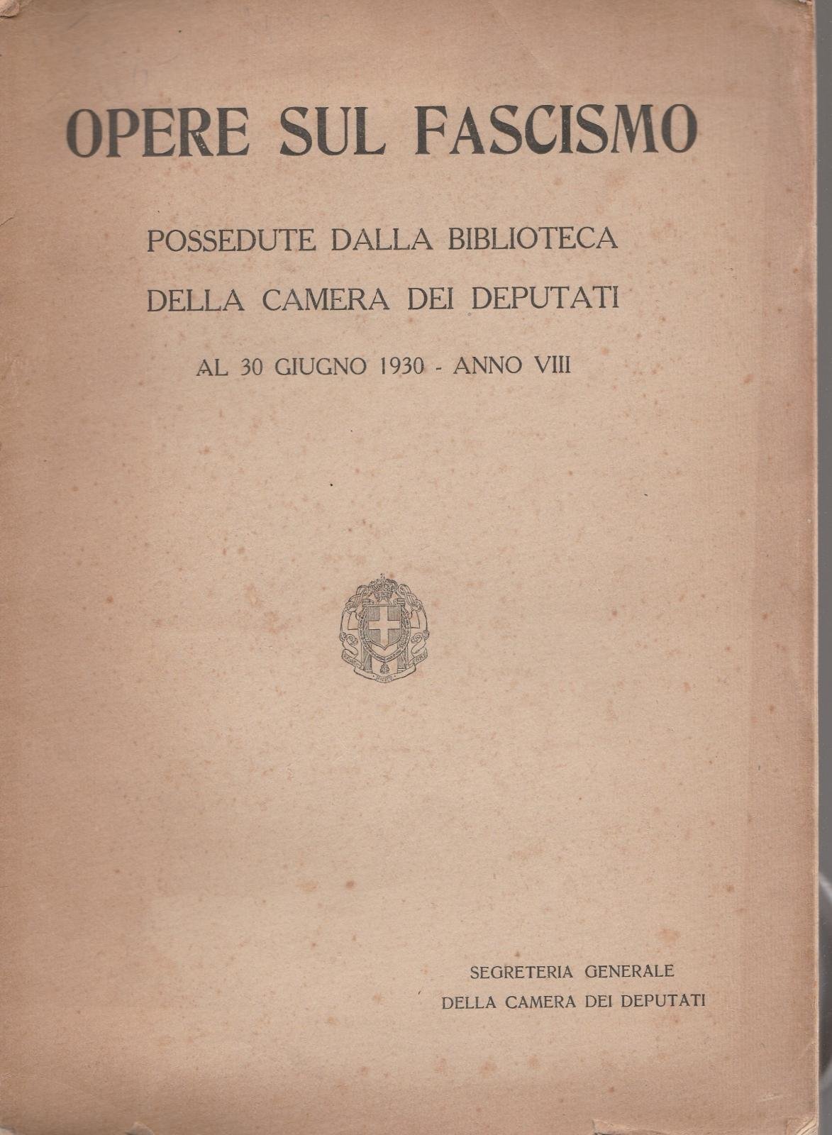 OPERE SUL FASCISMO POSSEDUTE DALLA BIBLIOTECA DELLA CAMERA DEI DEPUTATI AL 30 GIUGNO 1930 ANNO VIII