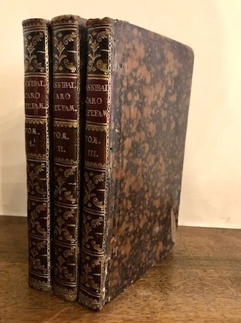 8vo (cm. 18), 208 pp; XVI-LXXXVII-208 pp.; VIII-304 pp.; 236-40 pp. Frontespizio del primo volume in rosso e nero, testatine e fregi n.t. Ritratto dell’Autore in antiporta. Belle legature coeve in piena pelle maculata con ricchi fregi oro e titoli oro su tasselli al ds. Tagli colorati. Carte di guardia marmorizzate. Ex libris al contropiatto anteriore. Esemplare in ottimo stato di conservazione.
