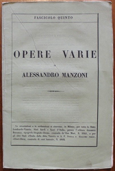 Opere varie di Alessandro Manzoni. Fascicolo quinto. Lettre a M. C. sur l' unité de temps et de lieu dans la tragédie, etc.